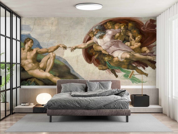 The Creation Of Adam Sistine Chapel Ceiling Fresco Wallpaper Etsy De